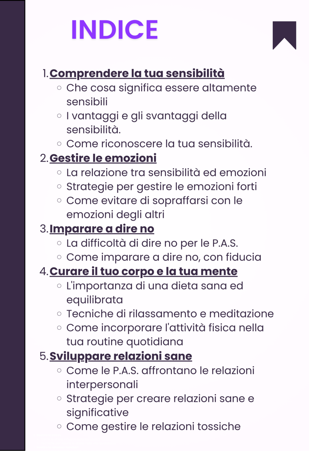 Con un linguaggio semplice e coinvolgente, ti racconterò tutto sulle P.A.S., ti darò consigli pratici e ti accompagnerò in un percorso di crescita personale. 💫